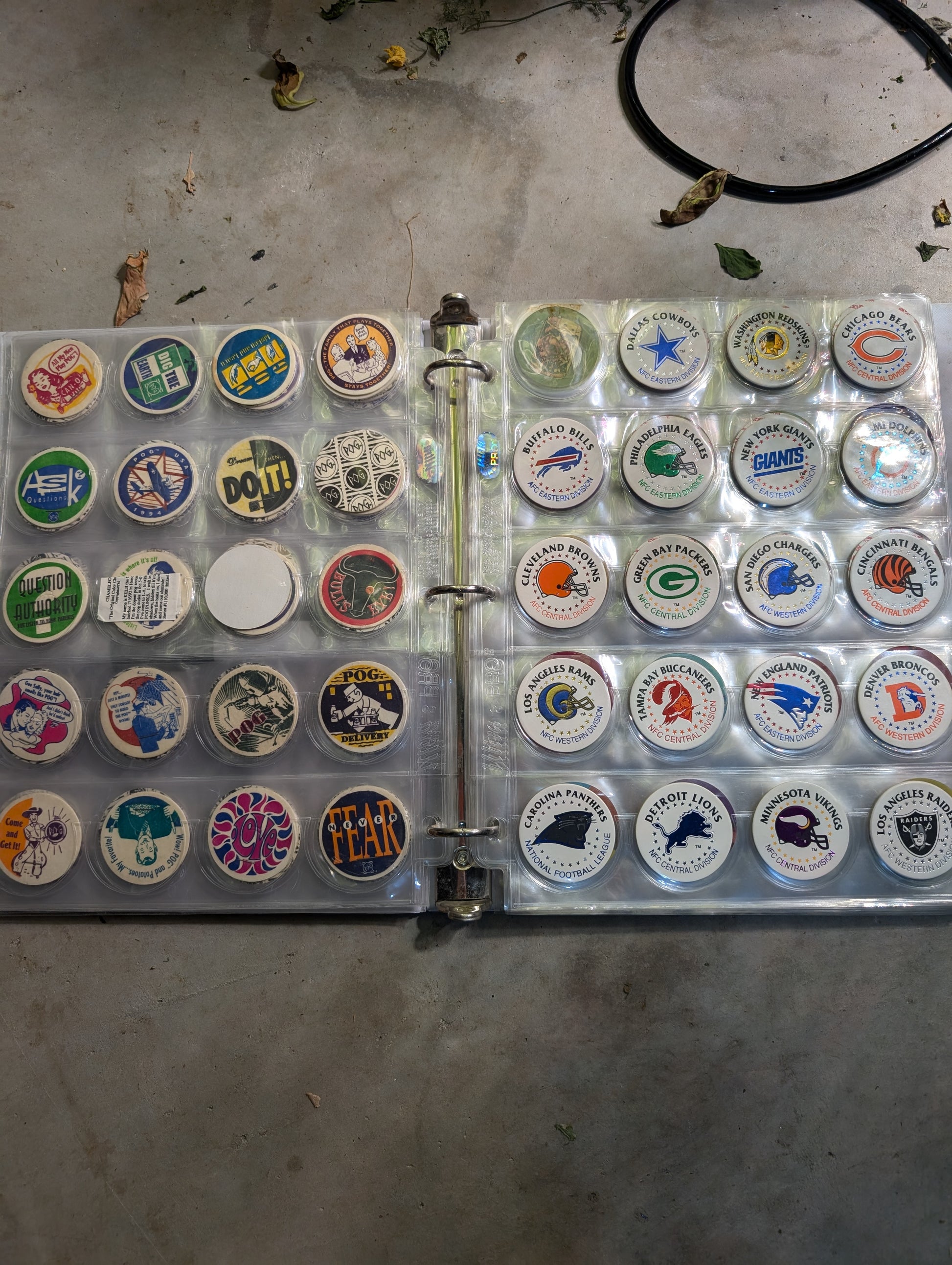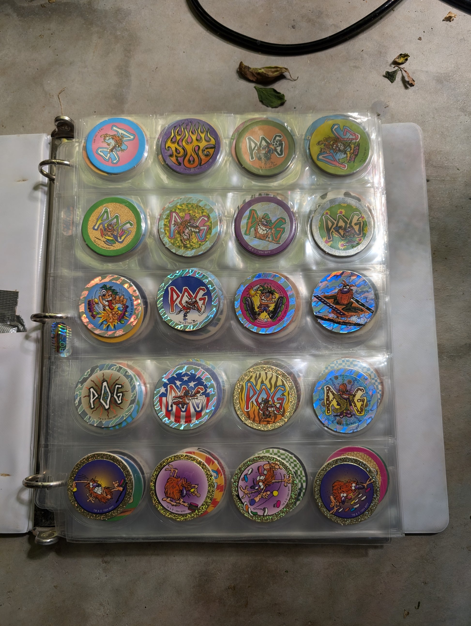 I have a binder full of pages of pogs, each page is on sale, you get a random set of 90s pogs.