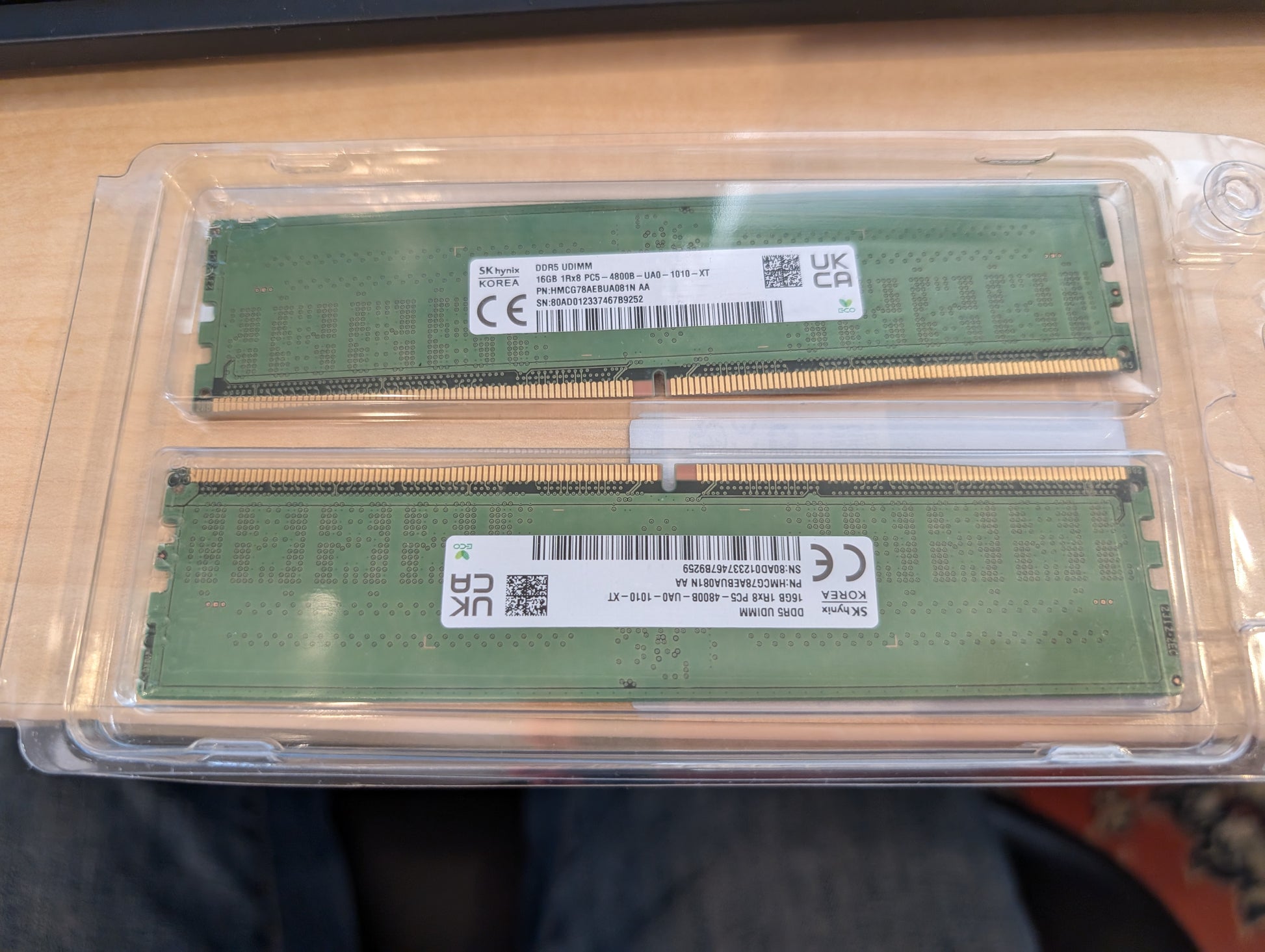 Two 16gb DDR5 UDIMM memory sticks, for a total of 32GB of memory.